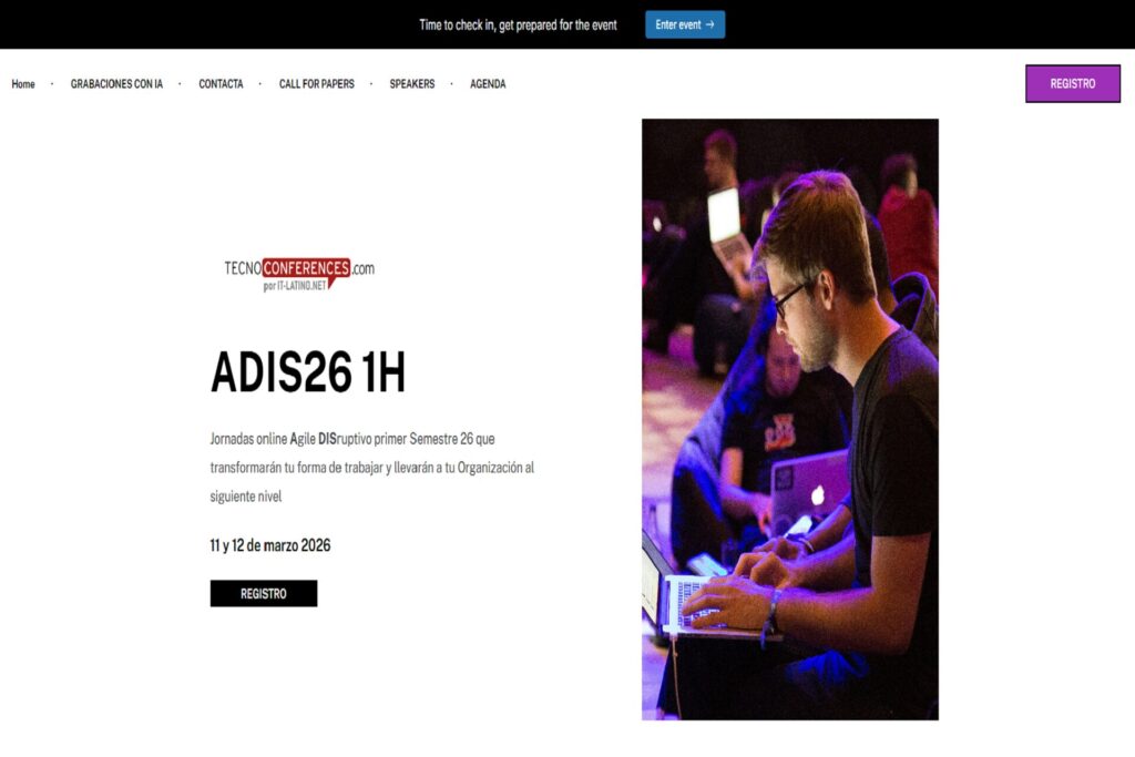Agilidad Gratis ADIS26 1H Jornadas online Agile DISruptivo primer Semestre 26 que transformarán tu forma de trabajar y llevarán a tu Organización al siguiente nivel 11 y 12 de marzo 2026 Ver más 20260312
